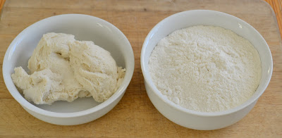 La peso ed unisco la stessa quantità in grammi di farina forte es. 100 gr di pasta 100 gr di farina